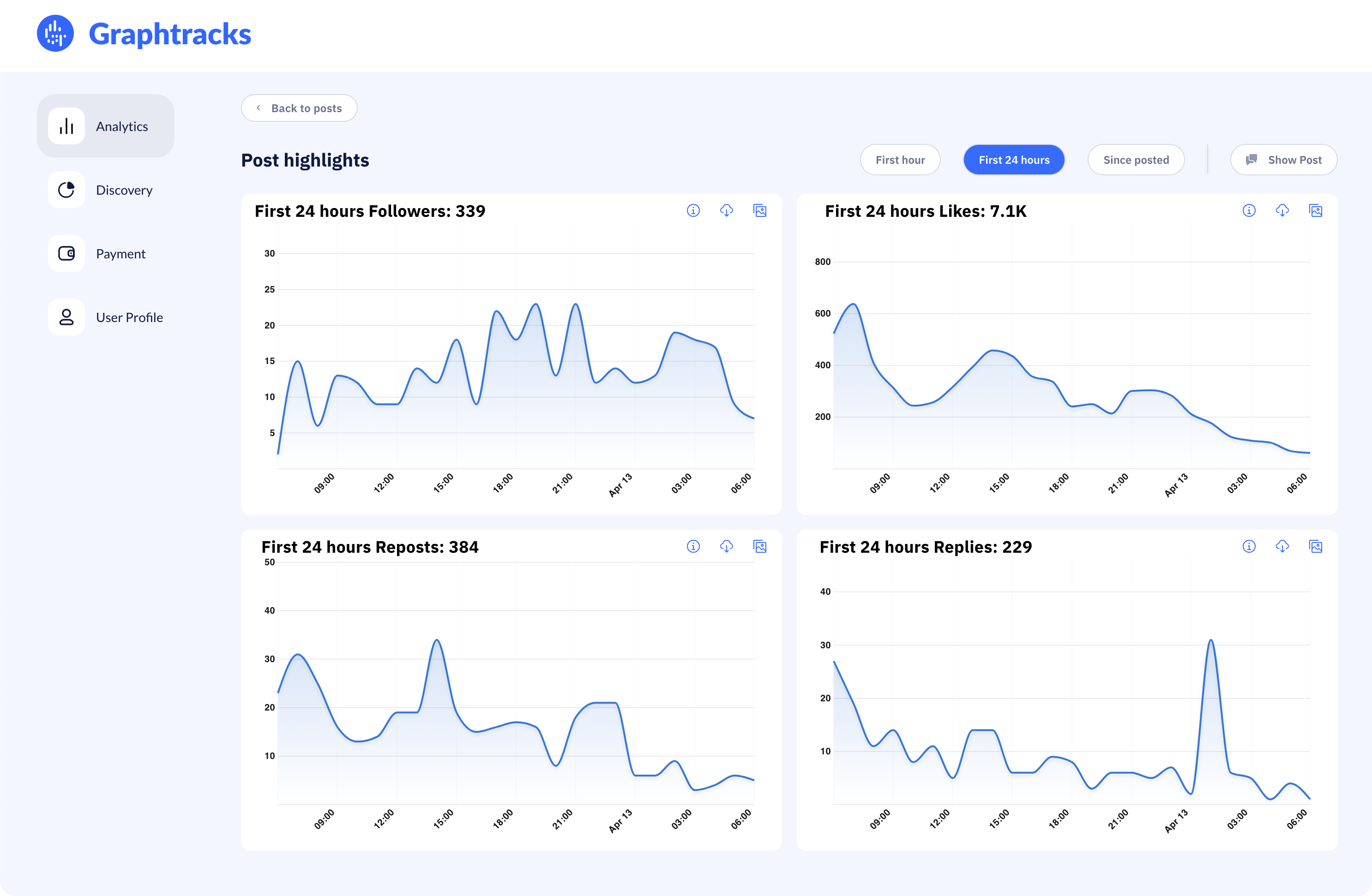 Explore in-depth analytics for individual posts to understand how each piece of content performs over time. This feature aids in recognizing patterns and optimizing content for better engagement.