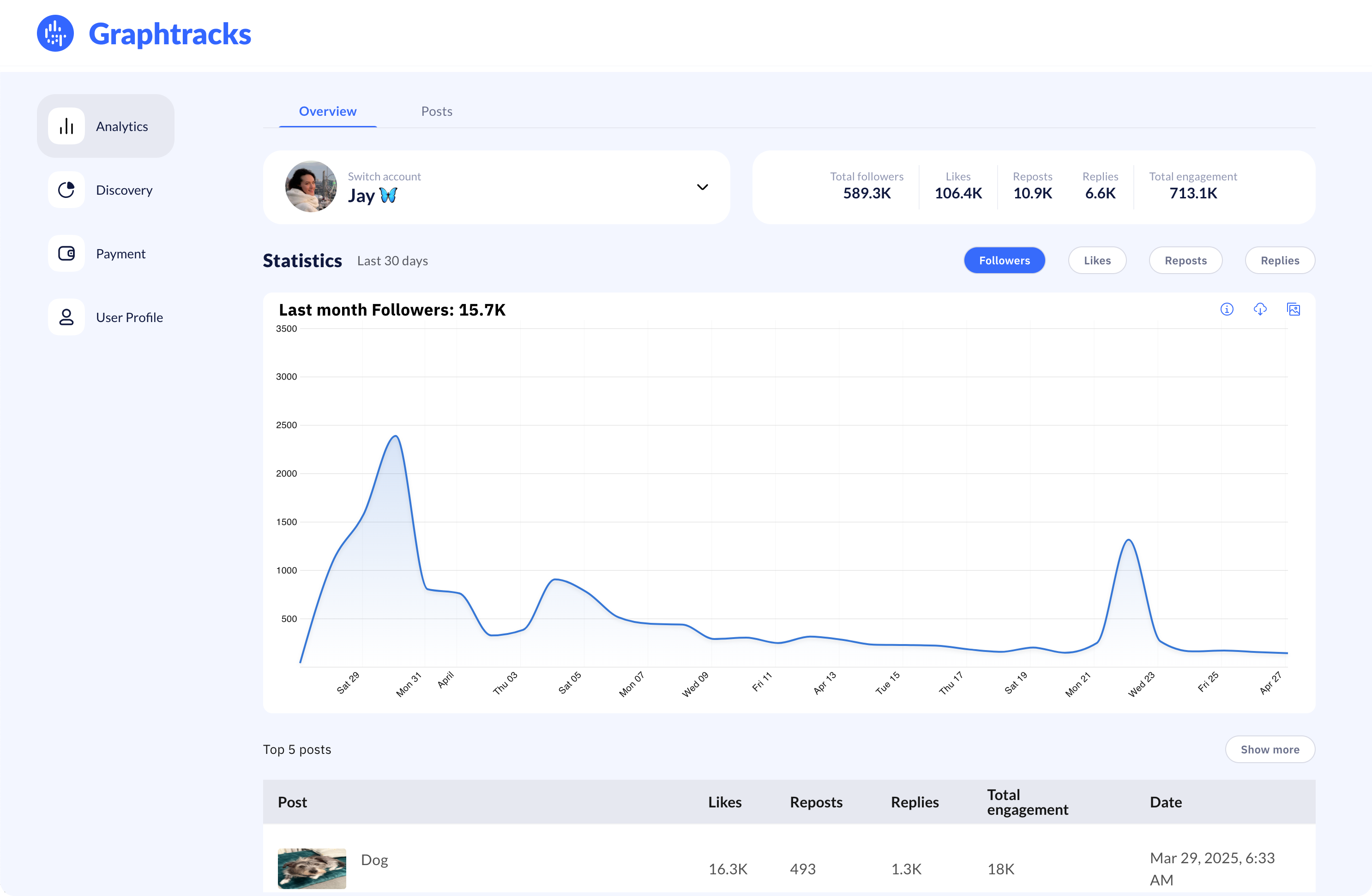 Designed with simplicity in mind, Graphtracks offers an intuitive interface that makes navigating through analytics straightforward, even for users with minimal technical expertise.Community Engagement